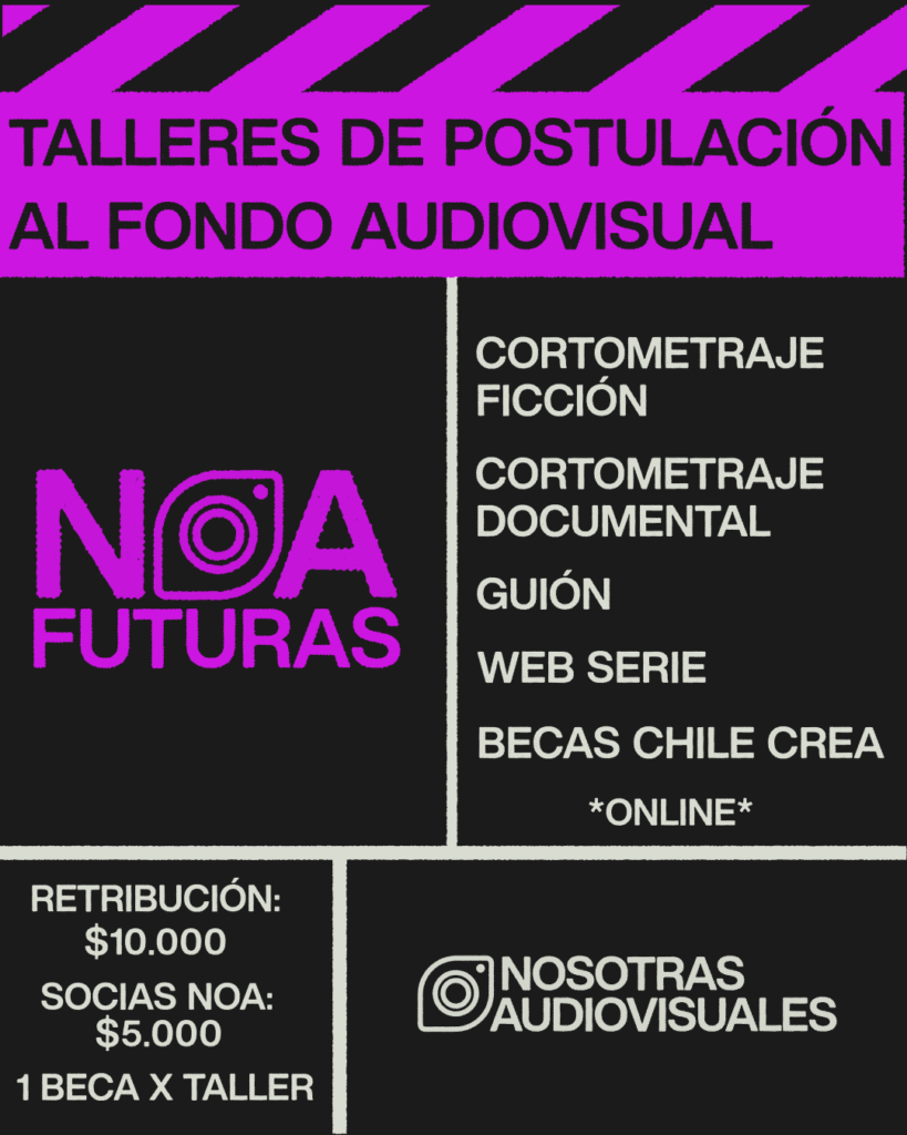Este taller busca revisar y fortalecer un proyecto de cortometraje que se encuentre en etapa de postulación al Fondo Audiovisual, tanto ficción como documental. Como objetivo se busca resolver dudas y guiar a les participantes para tener una óptima postulación.